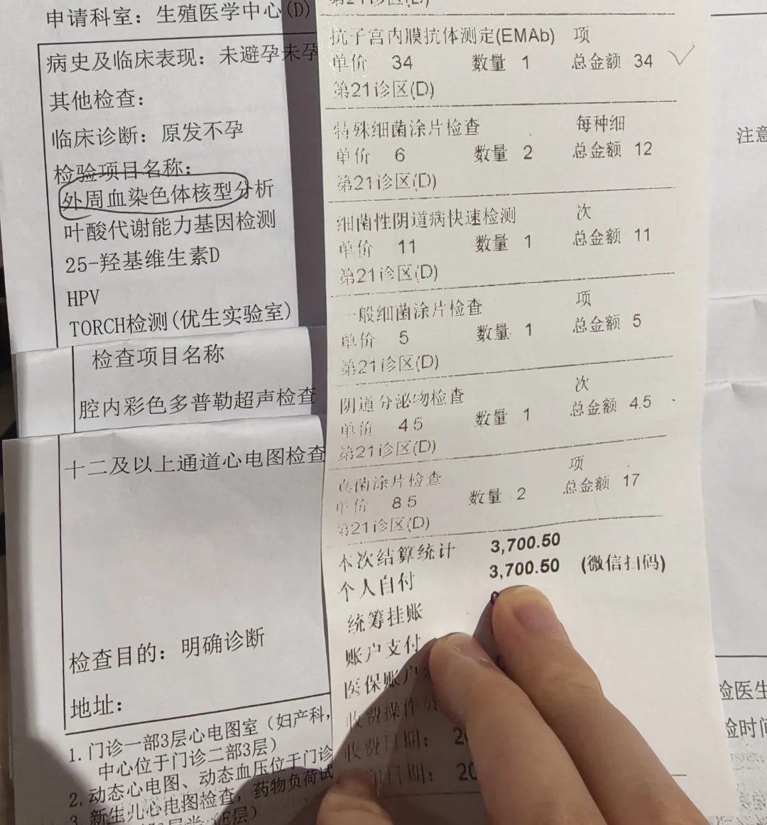 建档之后医生会开一系列的检查,我之前做过的检查单,有一些在有效期,所以就不重复开检查单了。